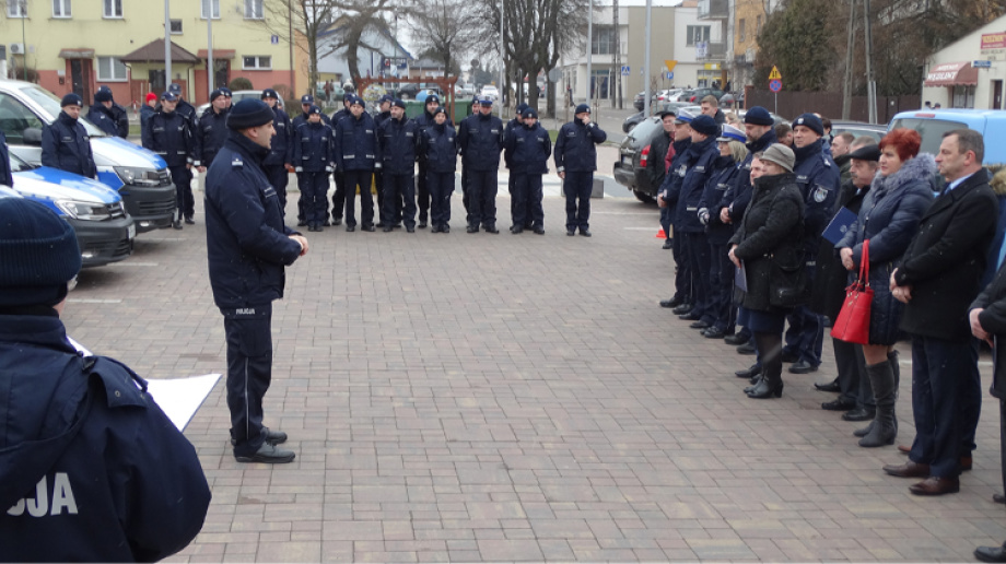 Po odprawie odbyła się krótka uroczystość na placu przed starą elektrownią. Po poświęceniu nowych aut, tj. skody superb, hyundaia i30, volkswagena t6, volkswagena caddy oraz kii sportage przez ks. kapelana Marka Grudę, przedstawiciele lokalnych samorządów otrzymali podziękowania z rąk komendanta podinsp. Mirosław Olszewski za przychylność i przekazanie środków na zakup nowych aut. Uroczystość zakończyła się pamiątkowym zdjęciem.