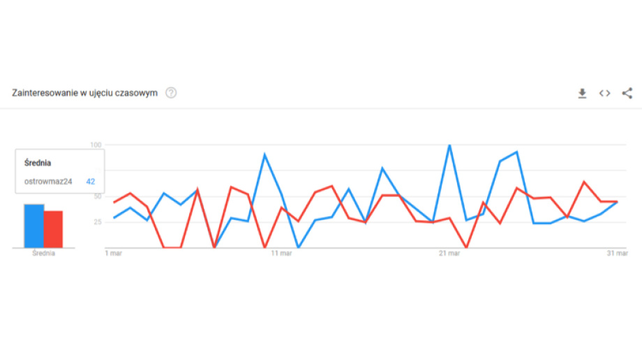 W marcu notowaliśmy dni w których na naszej stronie ponad 20 tysięcy unikalnych użytkowników, w jednej chwili nasz portal odwiedzało nawet 640 osób. Przez cały miesiąc internauci odwiedzający portal ostrowmaz24.pl wygenerowali blisko 0,5 miliona sesji, a najliczniejszą grupą odbiorców są osoby w wieku od 25-44 lat, których łącznie jest 60%.