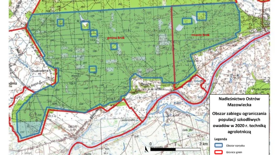Jak informuje nadleśnictwo oprysk będzie wykonywany w okresie pomiędzy 11 maja a 20 czerwca 2020 r. (w zależności od warunków atmosferycznych termin zabiegu może zostać przesunięty).
