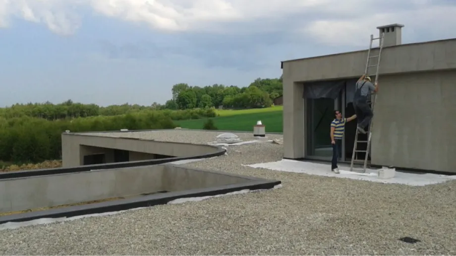 Dach płaski to dach o płaskiej, proste konstrukcji. Jego podstawą jest strop ostatniej kondygnacji budynku. W celu swobodnego odprowadzania wody opadowej spadek połaci w dach płaskim powinien wynosić od 2 st. do 15 st. Takie dachy są charakterystyczne dla stylu nowoczesnego, a obecnie wręcz z nim utożsamiane. Choć płaski dach nie pozwala na zaaranżowanie w budynku poddasza, możesz stworzyć na nim pełen uroku taras lub zielony ogród. Z powodu mniejszej powierzchni taki dach eliminuje utratę ciepła z pomieszczeń, co przekłada się na niższe zużycie ogrzewania i wynikające z tego oszczędności. Choć wykonanie dachu płaskiego nie jest trudne, przez specyficzne niuanse wymaga naprawdę dobrych umiejętności. Zwłaszcza w przypadku tych konstrukcji niezwykle ważny jest więc wybór kompetentnej ekipy budowlanej. W porównaniu do dachów skośnych, płaskie konstrukcje rzadziej wykorzystuje się w budownictwie jednorodzinnym.