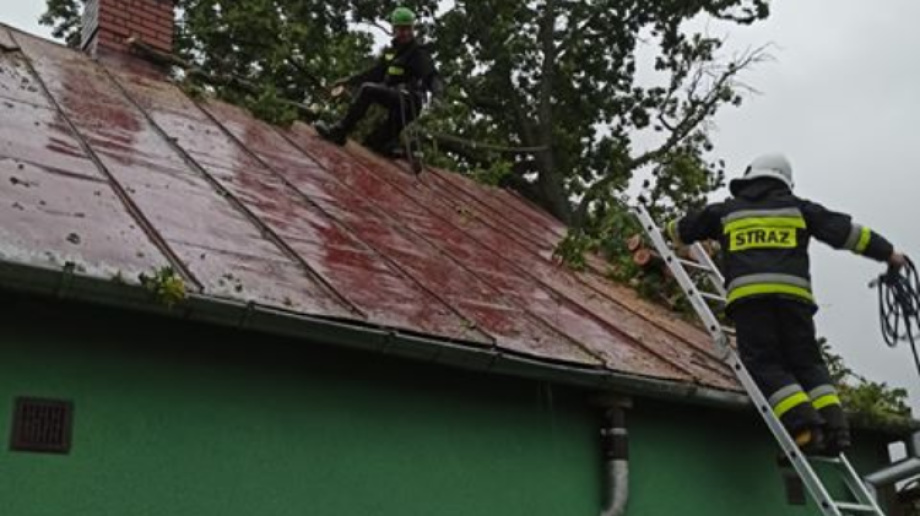 Po gwałtownej burzy z ostatniego poniedziałku strażacy z OSP w Stoku interweniowali przy powalonym na budynek mieszkalny drzewie.
