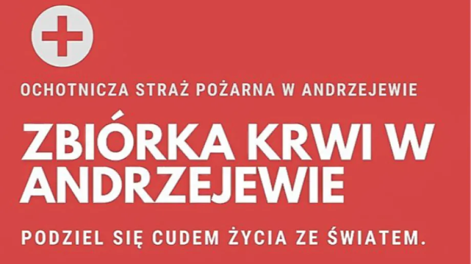 Ochotnicza Straż Pożarna w Andrzejewie zaprasza do wzięcia udziału w akcji zbiórki krwi w Andrzejewie.