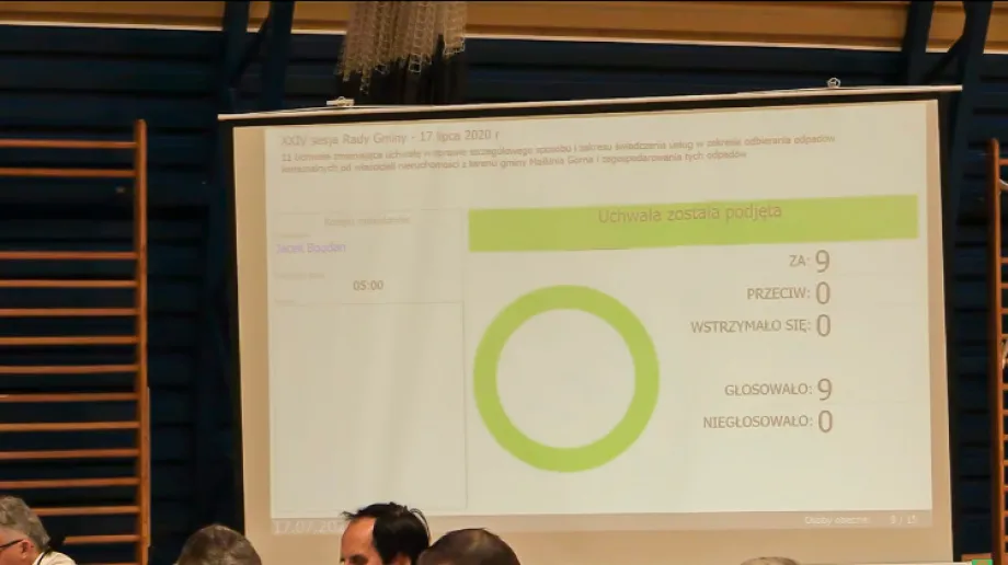 W głosowaniu brało udział 9 radnych, nikt się nie wstrzymał, nikt nie zagłosował przeciw. Uchwała została przyjęta jednomyślnie.