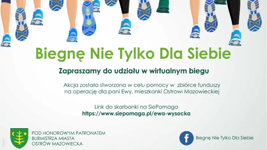 Akcja "Biegnę Nie Tylko Dla Siebie" została stworzona w celu pomocy w zbiórce funduszy na operację dla pani Ewy, mieszkanki Ostrowi Mazowieckiej. W akcji każdy może wziąć udział, a udział polega na podjęciu dowolnej aktywności fizycznej oraz wykonaniu zdjęcia.