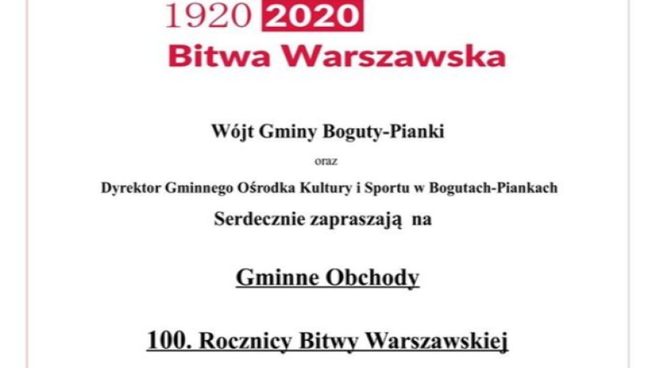Gmina Boguty Pianki zaprasza obchody 100. Rocznicy Bitwy Warszawskiej