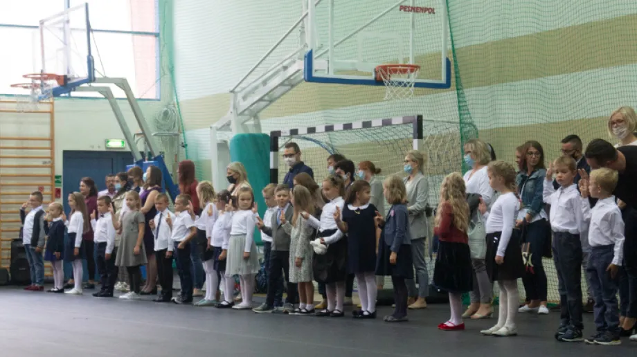 Hala sportowa przy ulicy Trębickiego. Maseczki na twarzach, płyn do dezynfekcji i jeden opiekun oddelegowany do swojej pociechy. Okoliczności niespotykane, bo w czasach pandemii i reżimu sanitarnego. Wielki papierowy ołówek i pasowanie, które przypominać może pasowane na rycerza.