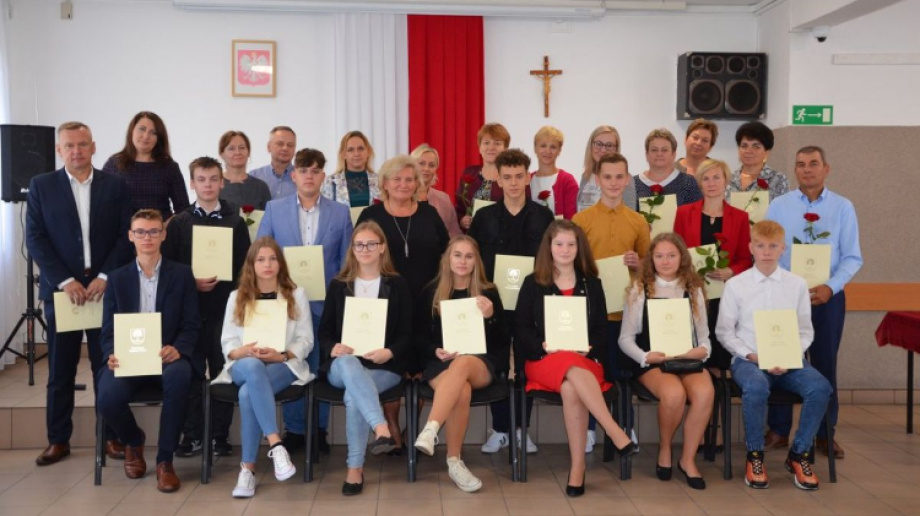 Wójt serdecznie przywitała zebranych oraz pogratulowała uczniom wysokich osiągnięć. W swojej wypowiedzi podkreśliła, że nagrody stanowią wyróżnienie za pracę włożoną w naukę, a ich otrzymanie powinno być motywacją do odnoszenia dalszych sukcesów. Słowa podziękowań oraz gratulacji za trud i wysiłek włożony w wychowanie dzieci Wójt Bożena Kordek skierowała także do rodziców i opiekunów nagrodzonych uczniów.
