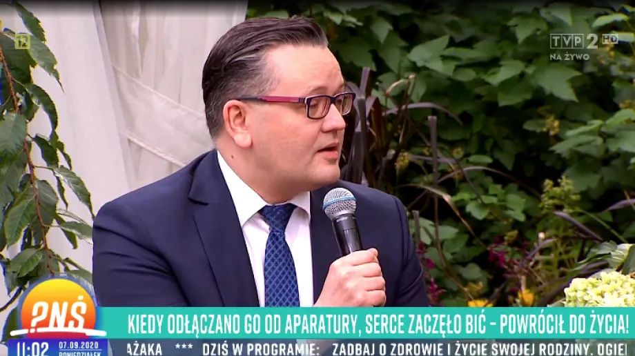 Studio Pytania Na Śniadanie odwiedził Dyrektor Szpitala Artur Wnuk, Doktor Marcin Pawłowski oraz pacjent Józef Szymaniak. Józef przeżył rozległy zawał serca. Do zdarzenia doszło podczas koszenia trawy, mężczyzna usiadł na krześle i od tamtej pory nic już nie pamięta. Z domu odebrało go pogotowie, gdzie przez 90 minut starano się przywrócić jego serce do pracy. Dopiero gdy odłączono go od aparatury u Józefa powróciło tętno oraz czynności skurczowe mięśnia sercowego. Józef powrócił do codziennej pracy, jeździ samochodem i funkcjonuje całkowicie normalnie. Jak sam mówi "czuje się dobrze".