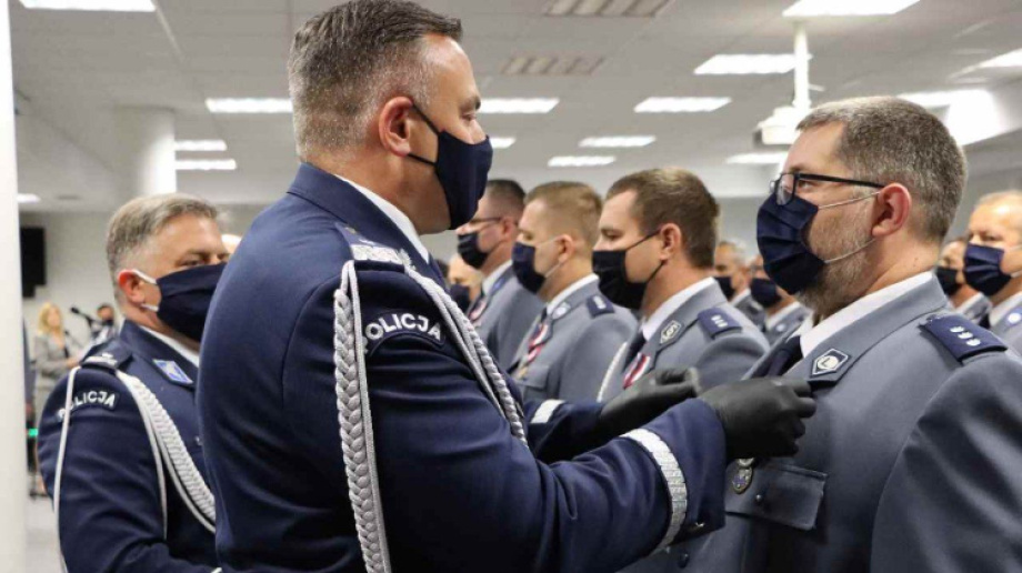 Po ślubowaniu Komendant Wojewódzki Policji zs. w Radomiu nadinsp. Michał Ledzion oraz podinsp. Piotr Janik i insp. Dariusz Krzesicki wręczyli odznaczenia resortowe. Złotą Odznakę Zasłużony Policjant otrzymały 2 osoby: