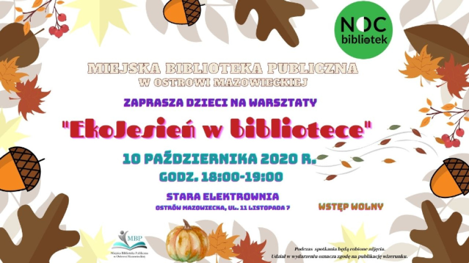 Miejska Biblioteka Publiczna w Ostrowi Mazowieckiej zaprasza na warsztaty dla dzieci, które zatytułowane "EkoJesień w bibliotece" będą prowadzone podczas akcji - Noc Bibliotek 2020.