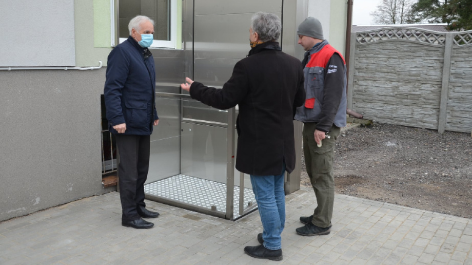 W budynku Powiatowego Zarządu Dróg oraz Wydziału Komunikacji, Transportu i Dróg Publicznych w Ostrowi Mazowieckiej, mieszczącego się przy ulicy Brokowskiej, doszło do odbioru windy przyściennej.