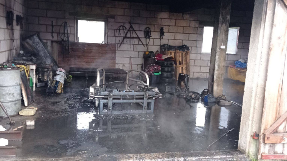 Do groźnie wyglądającego pożaru garażu i ciągnika rolniczego doszło w miejscowości Nowa Ruskołęka w gminie Andrzejewo.