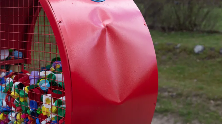 Wandalizm, czy sposób na spędzanie wolnego czasu? Metalowy pojemnik na plastikowe nakrętki w Komorowie zniszczony (zdjęcia)