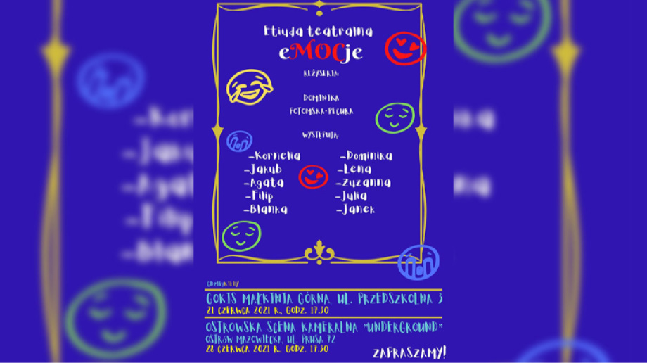28 czerwca o godz. 17.30 dzieci z koła teatralnego wystawią po raz drugi etiudę w Ostrowi Mazowieckiej w Ostrowskiej Scenie Kameralnej "Underground" przy ul. Prusa 72.