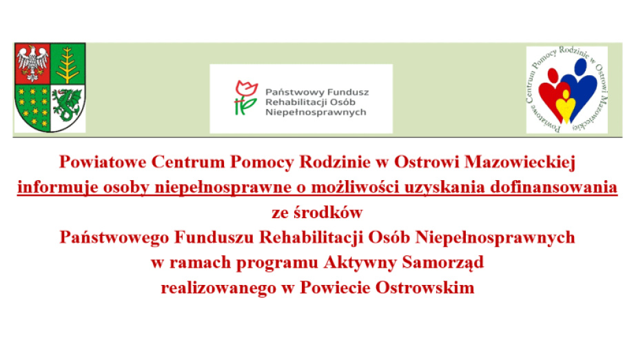 Wnioski do pobrania znajdują się na stronie internetowej www.pcprostrowmaz.pl program Aktywny Samorząd. Szczegółowe informacje można uzyskać w Powiatowym Centrum Pomocy Rodzinie w Ostrowi Mazowieckiej przy ul. Widnichowskiej 20, pod numerem telefonu 29 645 53 98 w. 22 oraz na stronie internetowej www.pcprostrowmaz.pl lub www.pfron.org.pl