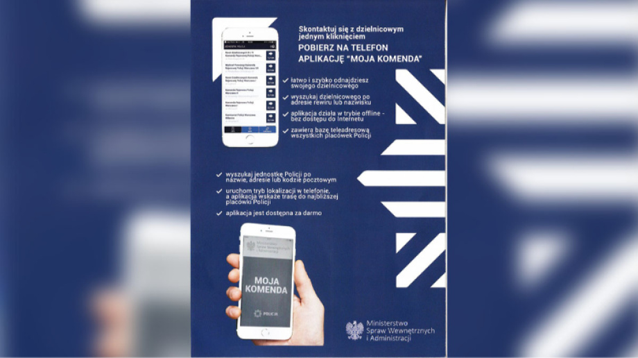 "Moja Komenda" to aplikacja, która pozwala na wyszukanie każdego dzielnicowego w Polsce, wystarczy wpisać swój adres zamieszkania a aplikacja odnajdzie funkcjonariusza, który przypisany jest do danego terenu. Do połączenia z funkcjonariuszem wystarczy jedno kliknięcie a wyszukiwarka dzielnicowych, których możemy odnaleźć również po imieniu i nazwisku działa w trybie offline.