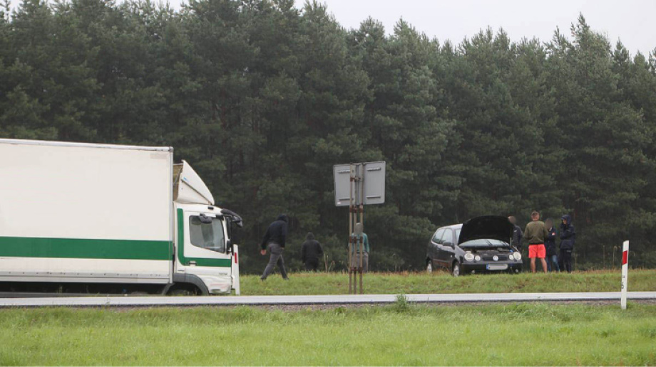 Do zdarzenia drogowego doszło na drodze krajowej 60 w pobliżu miejscowości Grądy. Kierowca pojazdu ciężarowego nie dostosował prędkości i zderzył się z samochodem osobowym.
