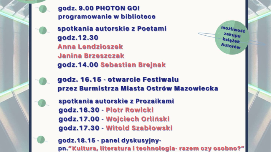 W piątek 1 października odbędzie się Ostrowiada Literacka, czyli pierwszy Ostrowski Festiwal Literacki. Wydarzenie odbędzie się w Starej Elektrowni w Ostrowi Mazowieckiej i rozpocznie się o godz. 9.00.