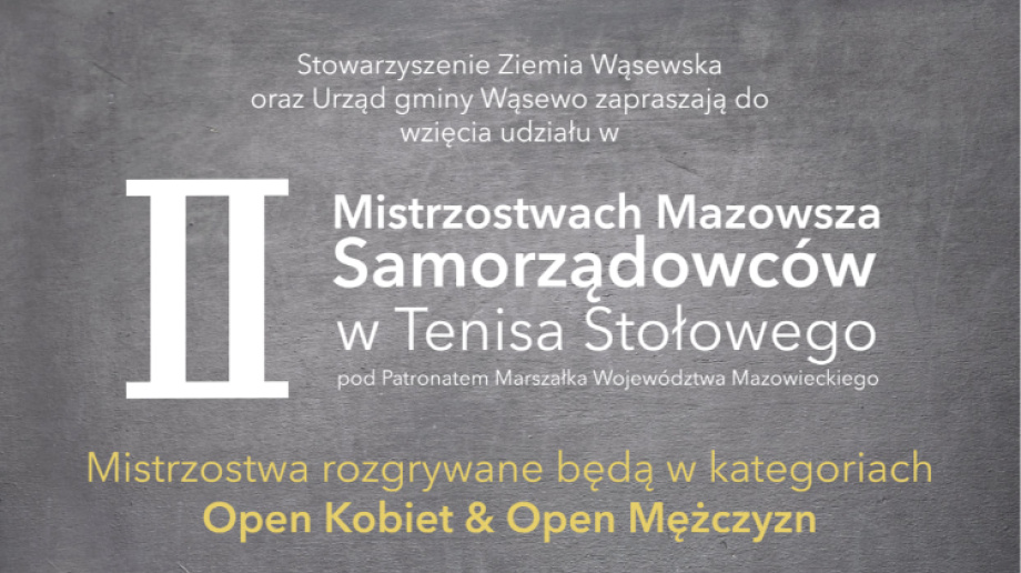 W Wąsewie odbędą się II Mistrzostwa Mazowsza Samorządowców w tenisie stołowym, które odbędą się pod Patronatem Marszałka Województwa Mazowieckiego.