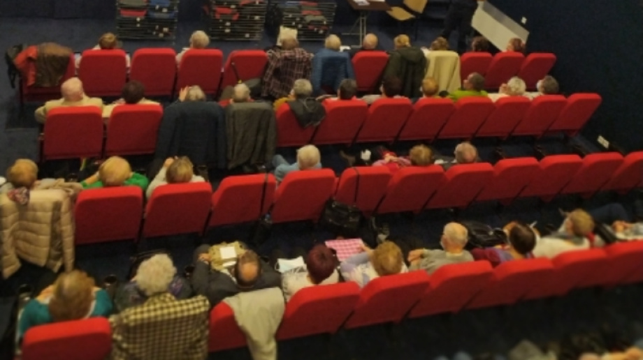 W ostrowskim kinie policjant zajmujący się profilaktyką wraz z przedstawicielką Wydziału Ruchu Drogowego przeprowadzili spotkanie ze studentami Uniwersytetu Trzeciego Wieku na temat bezpieczeństwa.
