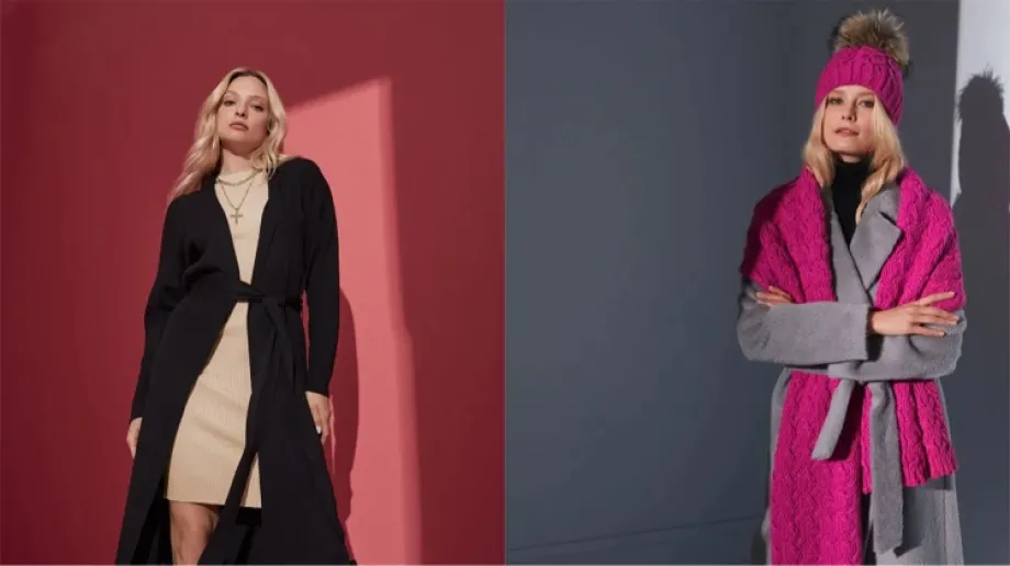 Ultramodne swetry z falbanami i szerokimi rękawami, ciepłe czapki, wełniane szale oraz puchowe kurtki.