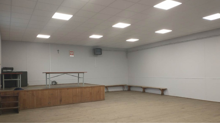 W ramach inwestycji w sali głównej został wykonany nowy podwieszany kasetonowy sufit, wymieniono również instalację oświetleniową, a także zamontowano w suficie 12 paneli oświetleniowych. Dzięki realizacji zadania poprawiono jakość warunków świetlicy.