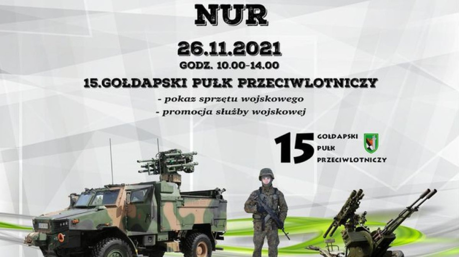 W piątek 26 listopada w godz. 10.00-14.00 na terenie Szkoły Podstawowej w Nurze będzie możliwość obejrzenia pokazu sprzętu wojskowego, który zaprezentuje 15. Gołdapski Pułk Przeciwlotniczy.
