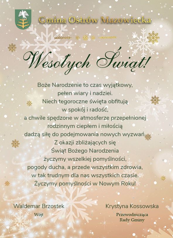 Życzenia świąteczne i noworoczne od Urzędu Gminy Ostrów Mazowiecka