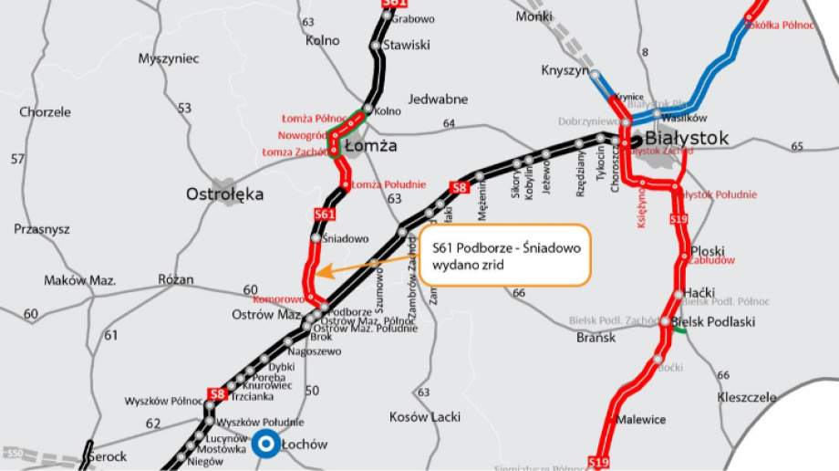W czwartek 9 grudnia Wojewoda Mazowiecki wydał decyzję o zezwoleniu na realizację inwestycji drogowej. Jeszcze w tym miesiącu plac budowy zostanie przekazany wykonawcy. Przebudowane zostaną również trzy kilometry drogi ekspresowej S8 w okolicy Ostrowi Mazowieckiej i to w tym miejscu powstanie nowy węzeł Podborze, który będzie łączył dwie drogi ekspresowe - S8 i S61. Z użytkowanym od połowy lipca 2021 roku fragmentem Via Baltiki Śniadowo - Łomża Południe odcinek połączy się z drugiej strony.