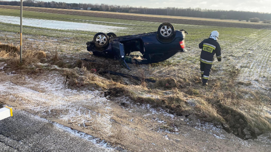 W sobotę 29 stycznia ok. godz. 8.00 doszło do zdarzenia drogowego na skrzyżowaniu drogi wojewódzkiej nr 694 - Kaczkowo Nowe z udziałem samochodu osobowego. Na miejscu okazało się, że kierujący pojazdem nie dostosował prędkości do warunków panujących na drodze, w wyniku czego wpadł w poślizg, zjechał z drogi i dachował.