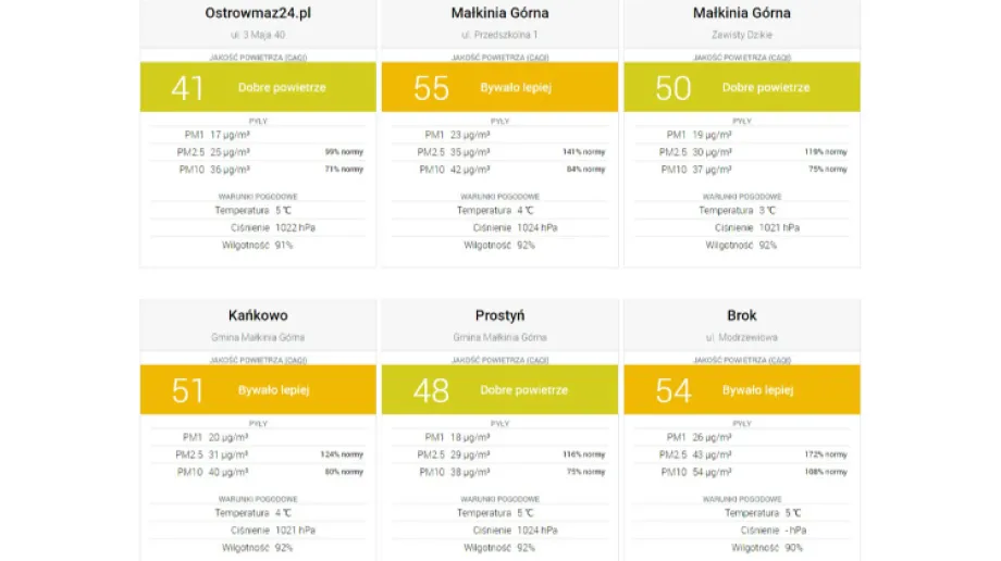 Wartości smogu są miarodajne dla terenu w promieniu około jednego kilometra od miejsca instalacji czujnika. Im więcej czujników w danej okolicy, tym bardziej dokładny jest pomiar. W powiecie ostrowskim rejestrujemy sześć czujników, które zostały umieszczone w różnych częściach miasta i w gminach. Na naszej stronie prezentujemy dane pochodzące z sześciu: