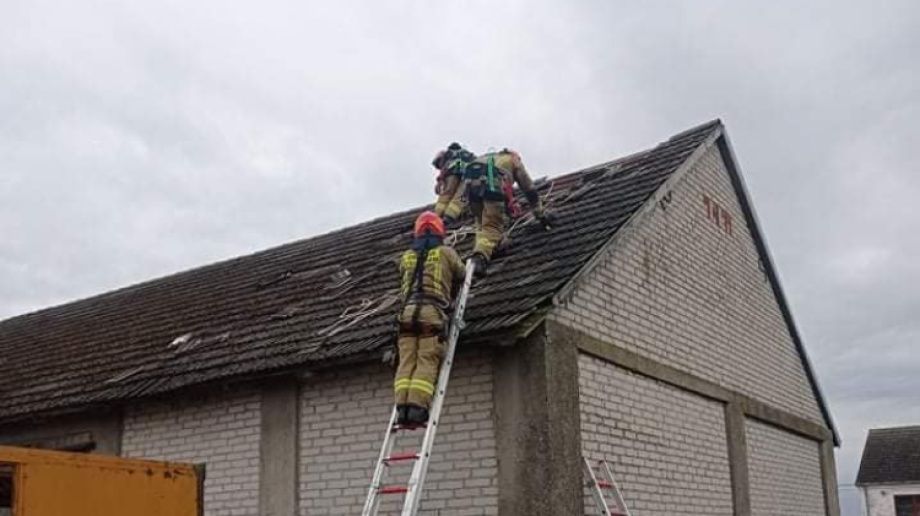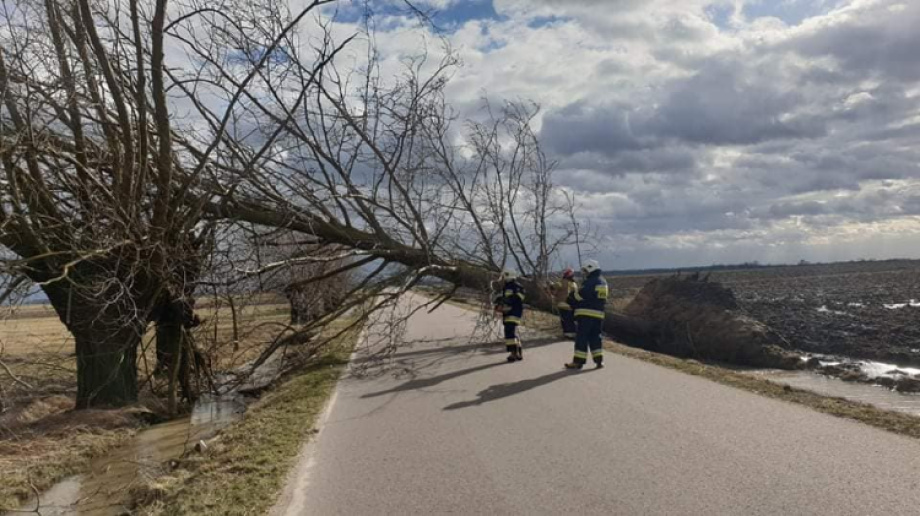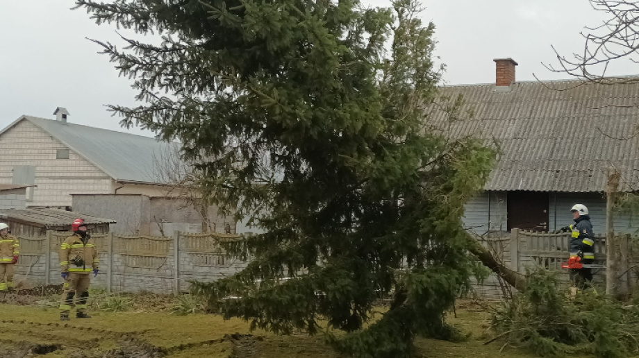W poniedziałek 21 lutego strażacy interweniowali do uszkodzonego dachu budynku gospodarczego oraz dwóch drzew, które w związku z podmuchami wiatru zagrażały liniom energetycznym.