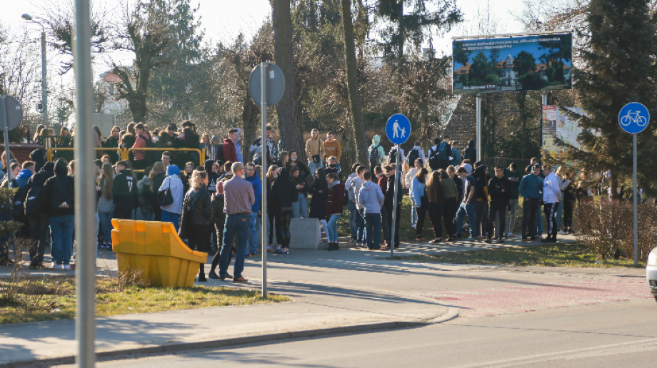 W poniedziałek 14 marca po godz. 8.00 uczniowie oraz pracownicy szkoły zostali ewakuowani przed budynek szkoły w związku z alarmem bombowym. Na miejsce przyjechała straż pożarna, która zabezpieczyła miejsce zdarzenia, a także policja.