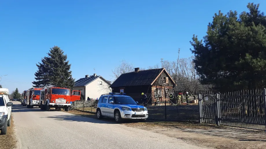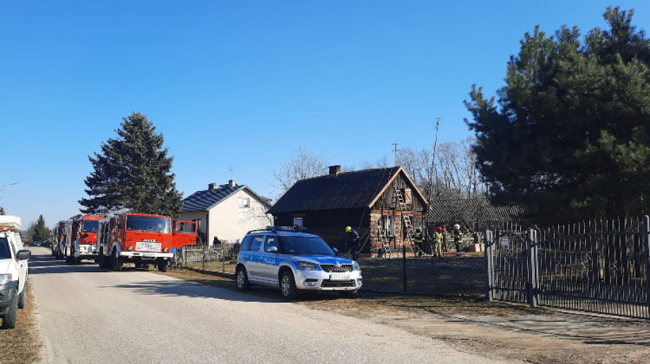 Przyczyny pożaru drewnianego budynku mieszkalnego ustalane są przez policję.