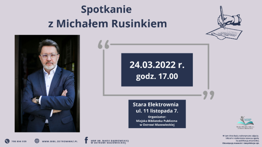Miejska Biblioteka Publiczna w Ostrowi Mazowieckiej zaprasza na spotkanie z Michałem Rusinkiem, które odbędzie się już za kilka dni.