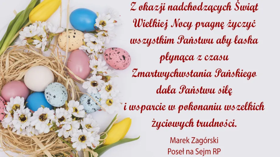 Z okazji nadchodzących Świąt Wielkiej Nocy pragnę życzyć wszystkim Państwu aby łaska płynąca z czasu Zmartwychwstania Pańskiego dała Państwu siłę i wsparcie w pokonywaniu wszelkich życiowych trudności.