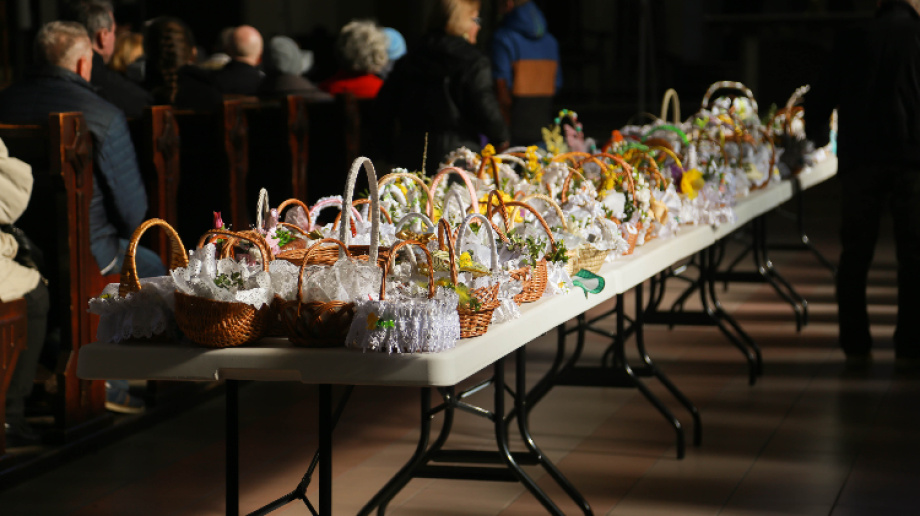 Podczas Wielkiej Soboty wierni odwiedzają swoje parafie, aby poświęcić pokarmy, które spożyją w trakcie wielkanocnego śniadania. W tradycyjnej święconce znajduje się wędlina, jajko, chleb, sól, kawałek ciasta oraz baranek.