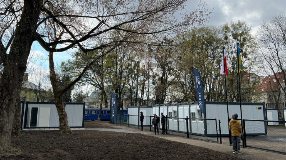 We Lwowie w Ukrainie otwarto zbudowane na zlecenie polskiego rządu miasteczko kontenerowe dla uchodźców wewnętrznych. Schronienie w nich znajdą kobiety i dzieci uciekające ze wschodu Ukrainy przed rosyjską agresją.