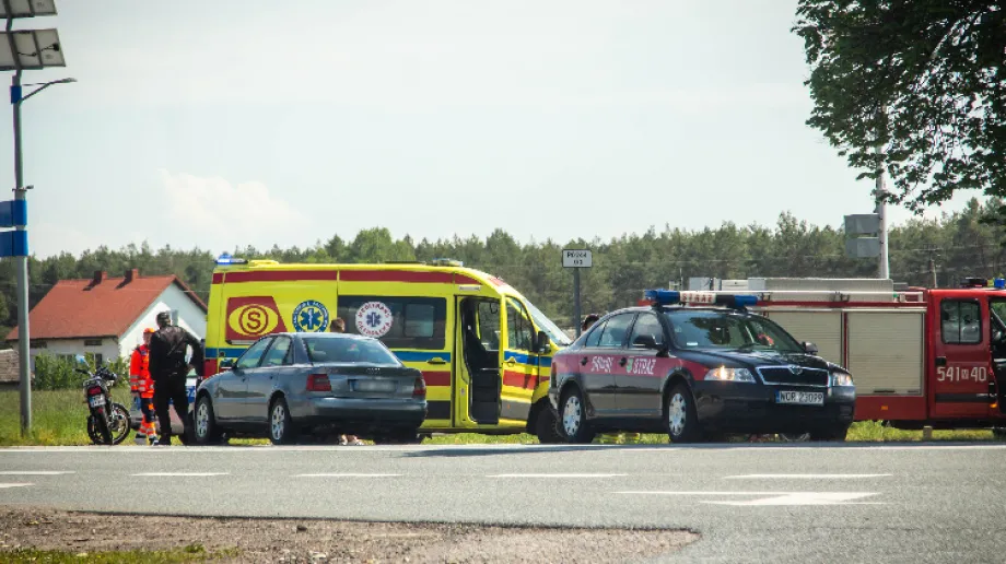 Do zdarzenia doszło w poniedziałek 23 maja po godz. 13.00 na drodze krajowej nr 60 w miejscowości Grądy. 67-letni kierowca autobusu z powiatu ostrołęckiego nie ustąpił pierwszeństwa przejazdu, w wyniku czego zderzył się z 29-letnim motocyklistą z powiatu ostrowskiego. Obydwaj kierowcy byli trzeźwi. Kierowca motocykla został przewieziony do szpitala na badania.
