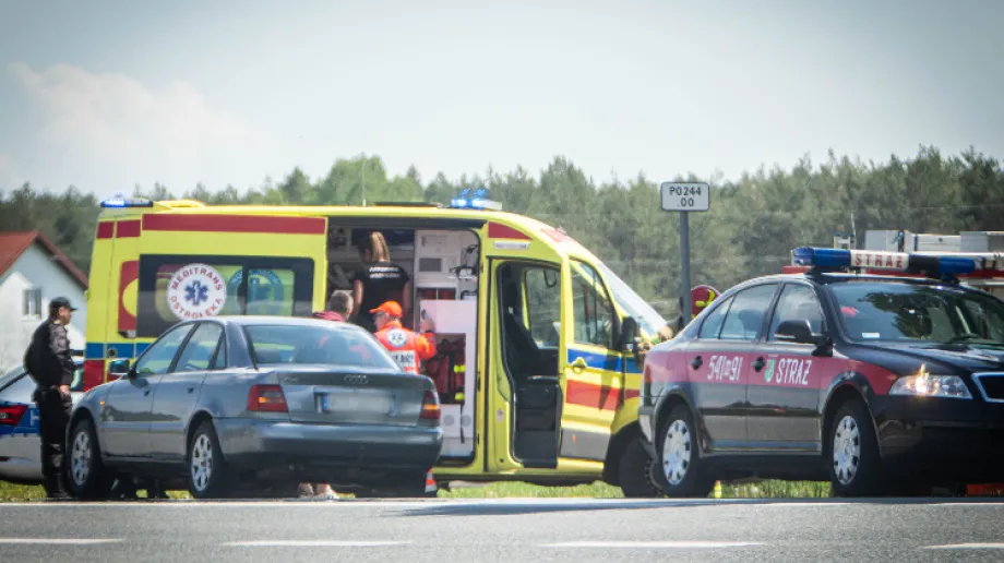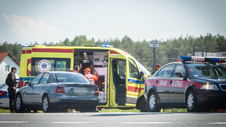 Policja Zderzenie osobówki z busem na trasie S8. Interweniowały służby ratunkowe (zdjęcia)