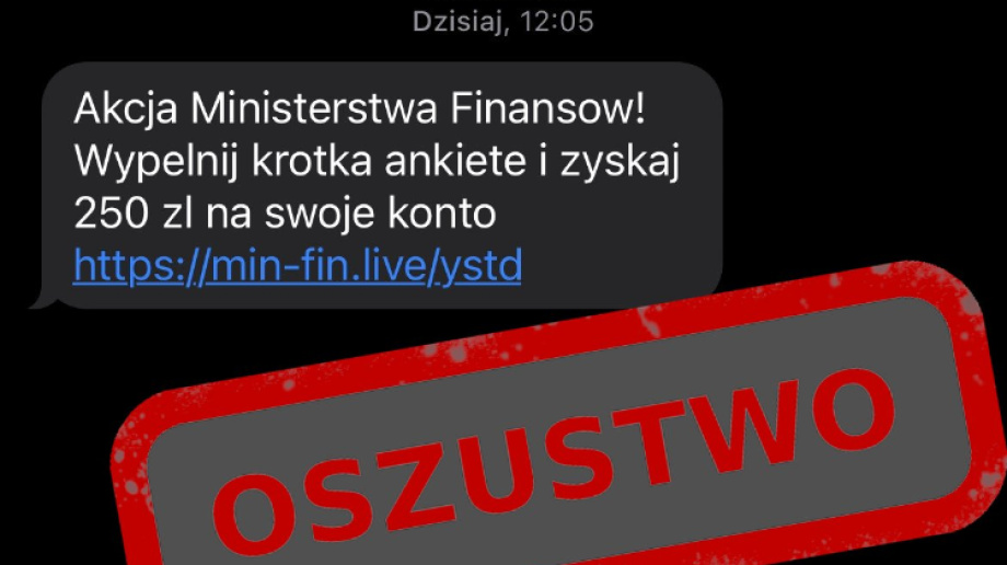 Link z SMS-a prowadzi do rzekomej ankiety MF, za której wypełnienie można otrzymać 250zł. Aby odebrać nagrodę, oszuści proszą o wpisanie danych użytkownika na fałszywym panelu logowania do banku. Takie wiadomości nie są wysyłane przez resort finansów i są próbą wyłudzenia danych.