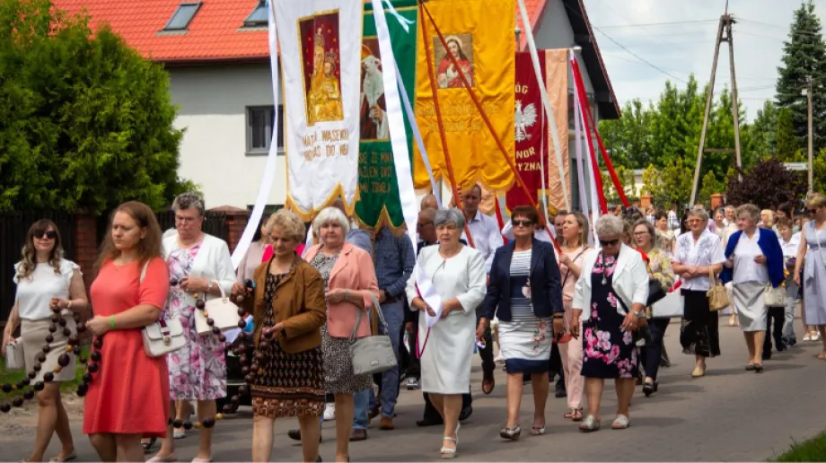 Wierni z Ostrowi Mazowieckiej uczestniczyli w procesjach Bożego Ciała, które przeszły ulicami miasta. Dziś przypada uroczystość Najświętszego Ciała i Krwi Pańskiej, potocznie określana jako Boże Ciało. To jedno z najważniejszych świąt w Kościele katolickim. Zobacz naszą relację z parafii Chrystusa Dobrego Pasterza w Ostrowi Mazowieckiej.