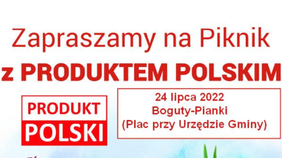 Gmina Zaręby Kościelne i Boguty-Pianki zapraszają w niedzielę 24 lipca na piknik z produktem polskim. Wydarzenie odbędzie się na placu przy Urzędzie Gminy w Bogutach-Piankach. Na imprezie Koła Gospodyń Wiejskich wezmą udział w "bitwie regionów" oraz zostaną przygotowane różne atrakcje dla dzieci. Nie może nikogo zabraknąć!