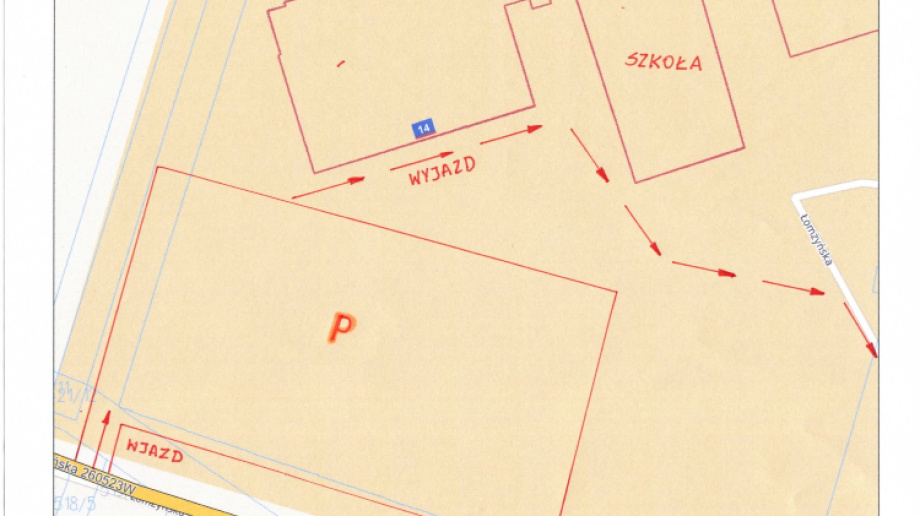 • na działce gminnej - wjazd i wyjazd od. ul. Łomżyńskiej,