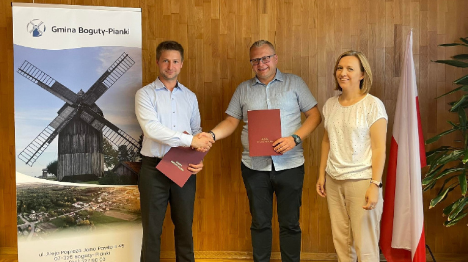 W czwartek 14 lipca podpisana została umowa między gminą Boguty-Pianki a wykonawcą z firmy Bomar II z Sadownego, który będzie realizował zadanie pt. "Termomodernizacja budynków użyteczności publicznej w Gminie Boguty-Pianki" współfinansowane z funduszy Unii Europejskiej. Prace rozpoczną się w Szkole Podstawowej im. Ojca Św. Jana Pawła II w Bogutach-Piankach.