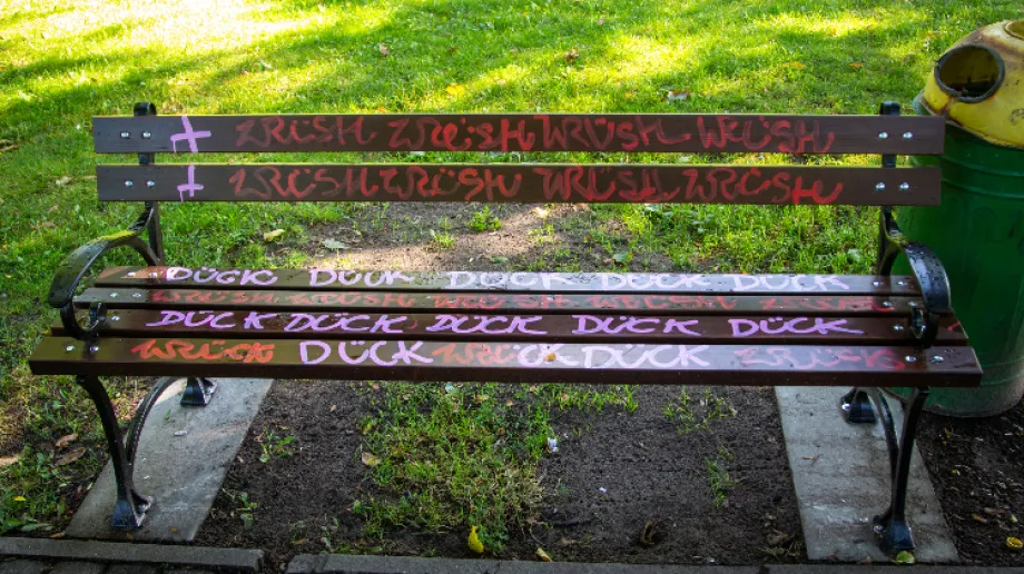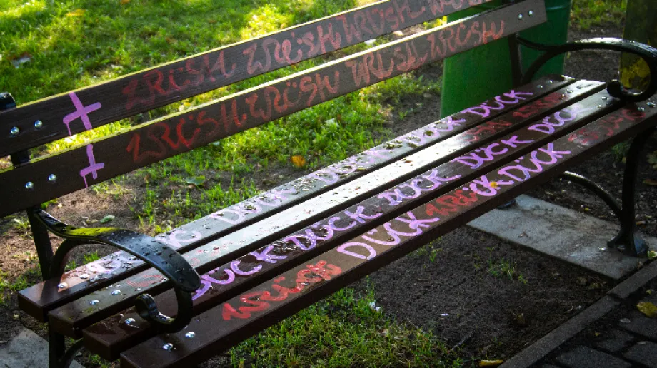 Dewastacja nowych ławek w ostrowskim parku nad stawem