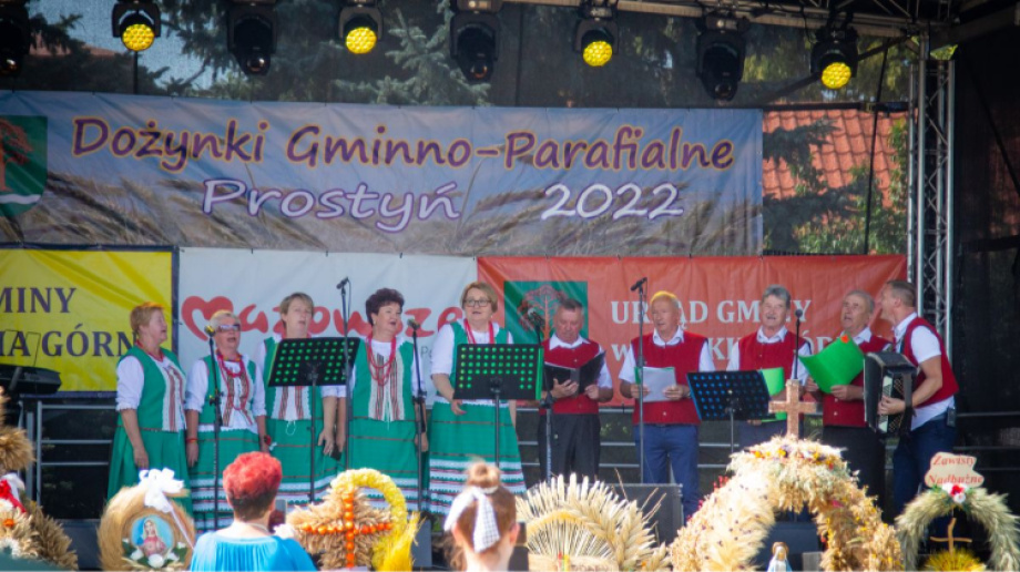 Na Dożynkach Gminno-Parafialnych w Prostyni kilka zespołów zaprezentowało swoje utwory na scenie. Mieliśmy okazję zobaczyć m.in. zespół Małkinianka, chór Cantilena, zespół Belfer's Band, zespół Wyszkowiacy oraz zespół Nadbużanie.