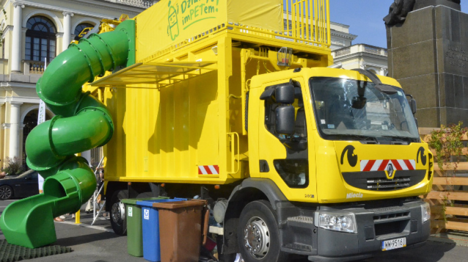 Dodatkową atrakcją dla najmłodszych jest zamontowana na górze śmieciarki zjeżdżalnia oraz gry zręcznościowe. Na wejściu zawieszona jest zgniatarka. Każdy chętny ma możliwość zgniecenia butelki, wyrzucenia jej do żółtego kosza i rozpoczęcia w ten sposób drogi butelki PET, której dalszy etap obserwować może w śmieciarce.