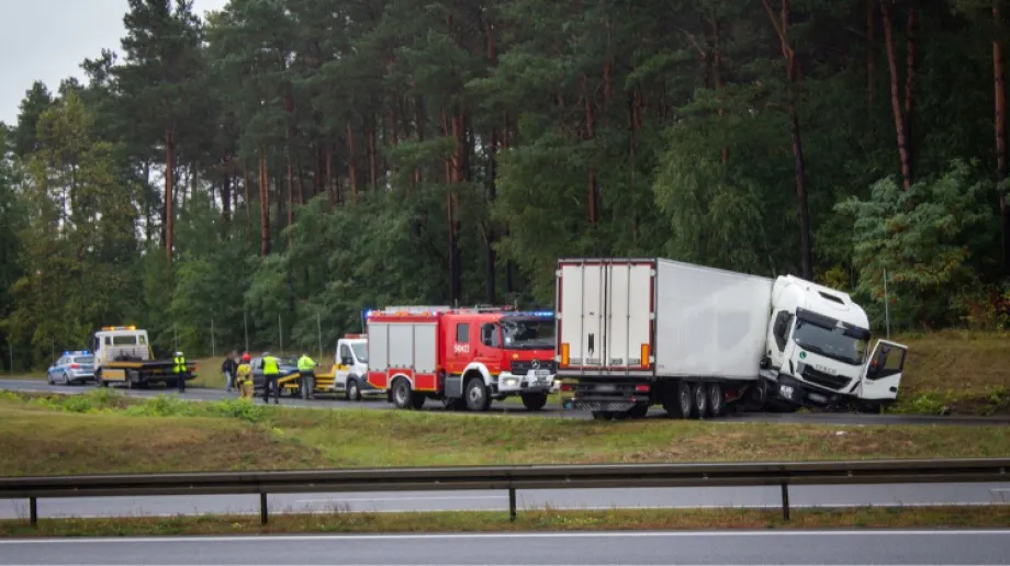 Węzeł od strony Warszawy prowadzący na ul. Różańską zablokowany! Doszło do zdarzenia drogowego samochodu ciężarowego i samochodu osobowego.