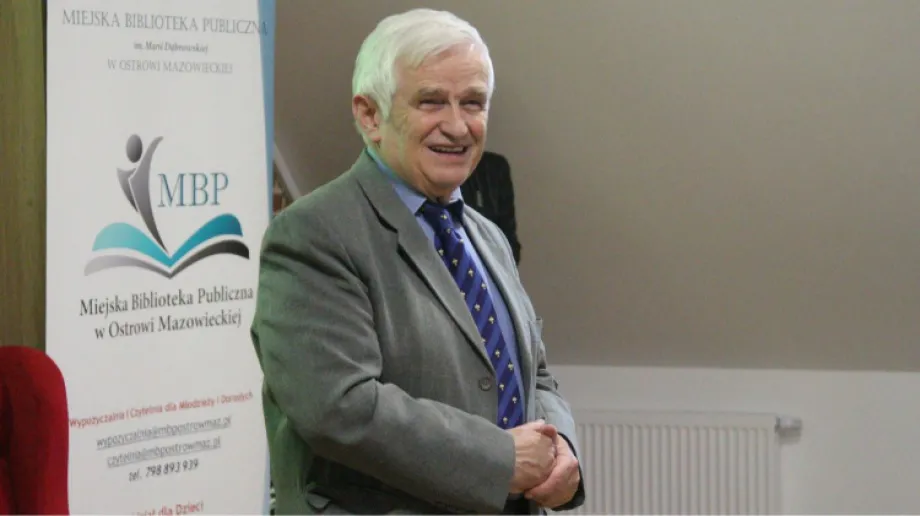 W Miejskiej Bibliotece Publicznej w Ostrowi Mazowieckiej odbyło się spotkanie z prof. Adamem Dobrońskim oraz otwarcie wystawy plenerowej pt. "Śladami Podchorążych".